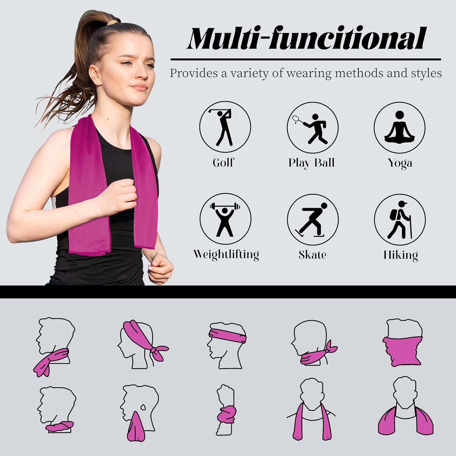 Our cooling towel for neck and face is made of high evaporation breathable mesh material, which is breathable, gentle and durable, providing you with comfortable breathability and effective sweat absorption. The microfiber towel can instantly produce a cooling feeling when activated by water, using the moisture in the towel to draw sweat away from the skin, keeping you cool.